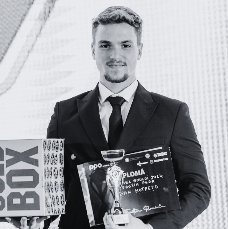 Sunt înotător și triathlonist paralimpic, campion mondial de juniori la 3 probe de înot, câștigător de cupe mondiale la triathlon, student la Universitatea Națională de Educație Fizică și sport București anul 2 și antrenor principal de înot la OV Sports Otopeni. Port proteză la piciorul stâng de la vârsta de 10 ani în urma unei accidentări la rugby. Mă bucur că voi participa la acest proiect alături de voi și pentru asta vreau să vă mulțumesc!