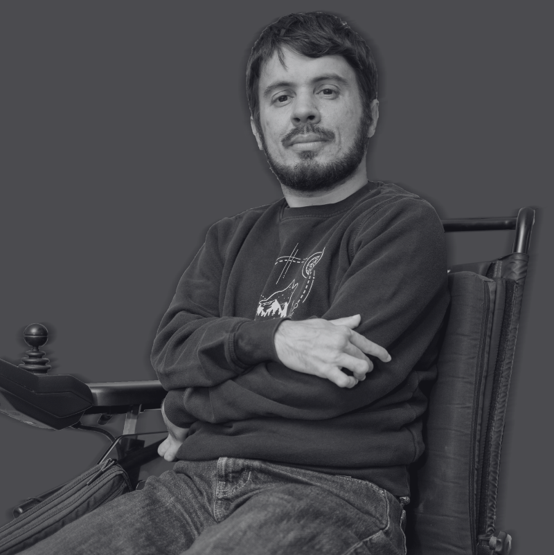 Eu sunt Alex Tache, în primul rând om și apoi persoană cu o dizabilitate dobândită în urma unei boli ce m-a țintuit 3 ani la pat. Lucrez în domeniul IT, dar m-am implicat mult și în activități civice, considerând că putem contribui cu toții la o schimbare a lumii în care trăim. Și cum putem face asta mai frumos decât prin artă, motiv pentru care am acceptat cu drag această provocare. Vă aștept la teatru ca să descoperim împreună lumea persoanelor cu dizabilități!